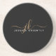 Porta copos de arenito moderna personalizada com simples e elegante escrita caligrafia ou monograma e nome em ouro e branco contra um fundo preto editável para um aspecto na moda ou profissional. ALTERAÇÕES: Altere a cor de fundo, escolha um plano de fundo gráfico estilizado ou altere o estilo, a cor, o tamanho e a posição da fonte de texto clicando em EDIT (EDITAR) na seção PERSONALIZE para obter um design personalizado. ASSISTÊNCIA: Para obter ajuda com a modificação ou personalização do design, alteração de cor, redimensionamento, transferência do design para outro produto ou, se você quiser coordenar itens, entre em contato com o designer ANTES DE PEDIR através da guia MENSAGEM de bate-papo Zazzle abaixo ou envie um email para makeitaboutyoustore@gmail.com.