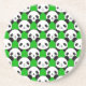 Um urso panda fofo, estilo de desenho animado kawaii. Design original em preto e branco com fundo verde.