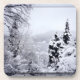 Uma fotografia mostrando apenas um vislumbre do lago montanhoso através de árvores de abetos cobertas de neve. Esta imagem da paisagem é manipulada digitalmente para parecer uma aquarela. O lago Nojiri é um lago glacial nos Alpes japoneses. É um resort popular, o Verão e o inverno, e os Jogos Olímpicos de inverno de 1998 foram realizados nas proximidades de Nagano e nas encostas de esqui circundantes. Embora o clima seja temperado e o lago raramente congela, as montanhas costumam estar cobertas de vários pés de neve no inverno.