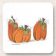 Um grupo de três abóboras laranja brilhantes com folhas de verde limão prontas para portas copos de outono.