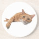 Retrato de uma taça laranja de taça doméstica de gato deitado sobre um fundo branco com pata cortada sobre uma mesa