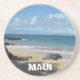 A porta copos de Sandstone é mostrada com uma impressão fotográfica de uma bela praia em Maui.
