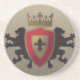 Porta copos medieval do arenito da heráldica do leão. Um design da brasão que caracteriza leões gêmeos, um protetor, uma coroa, e um flir-de-lis. Quais eram muito simbólicos durante as idades medievais em Europa. A heráldica teve descrições de criaturas poderosas, tais como leões, dragões, e grifos, em suas armadura e armas. Era uma maneira de identificar combatentes no campo de batalha.