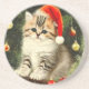 Porta copos Sandstone com um gatinho natal vintage! Este gatinho adorável veste um chapéu de Papai Noel e se senta em uma árvore de Natal decorada com ornamentos. Um presente maravilhoso para a época de Natal e amantes de gatos!