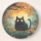 Porta-copos O outono deixa aconchegante cair o gato preto na m