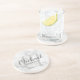 Adicione um toque pessoal ao seu casamento com porta copos personalizada de padrinhos de casamento. Esta porta copos apresenta o nome personalizado dos padrinhos de casamento no estilo de fonte do script moderno da cinza e o monograma no estilo de fonte do script moderno da cinza clara como fundo com título e data de casamento na cinza estilo de fonte sans serif moderno em fundo de mármore branco. Também perfeito para o melhor homem, pai da noiva e mais.