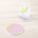 Lindo porta-copos de moda com patas pastel arco-íris em fundo bege claro. Ideal para amantes de animais de estimação.