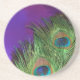 Fotografia maravilhosa de penas de pavão. O fundo de pelúcia roxa faz uma bela vida estática.