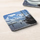 Foto de um porto pequeno na costa do mar Báltico alemão. Há um barco de pesca velho no porto. O sol da tarde está brilhando na água.