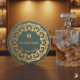 Elevate your home bar with this custom-designed coaster. Featuring an elegant gold mandala border on a deep green background, it is personalized with the initial "H", "THE SMITH HUB", "Est. 2026", and "Dublin". Perfect as a unique housewarming, wedding, or anniversary gift, or as a stylish addition to your own pub. Customize the text to create your own unique version.