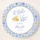 A sand stone coaster for newlywed's home featuring Mediterranean tile patterns, elegant script calligraphy, and a playful watercolor gelato ice cream design. Inspired by Italian coastal home decor and the sunny charm of the Amalfi Coast, this modern stylish barware captures the spirit of la dolce vita with bright blue and lemon citrus yellow tones and a relaxed Mediterranean summer aesthetic. Perfect for adding a chic, cheerful accent to a newlywed home, kitchen, or living space.