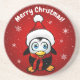 Use seu próprio texto para personalizar esses porta-copos redondos com um desenho animado de pinguim engraçado com chapéu de Papai Noel e crie um favor de Natal verdadeiramente único.