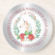 Um unicórnio de Natal bonito com composição de poinsettia com cinza prateada e borda branca e texto personalizável.