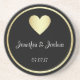 O ouro e o preto personalizaram favores do presente das portas copos do casamento. O costume este coração elegante do preto e do ouro com nomes dos noivos com casamento data. Presentes bonitos para dar seus convidados. A pia batismal e o tamanho podem ser mudados.