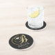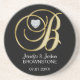 O ouro e o preto personalizaram favores do presente das portas copos do casamento. O costume este monograma elegante do preto e do ouro rotula "B" e coração do diamante do falso. Os nomes dos noivos, o sobrenome e a data do casamento. Presentes bonitos para dar seus convidados. A pia batismal e o tamanho podem ser mudados. Desenhista do contato para a letra feita sob encomenda.