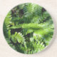 Uma imagem aproximada de samambaias primavera verdes iluminadas por luz aplaudida através da cobertura da floresta.