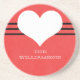 Doce e encantadora Porta copos Moderna com fundo vermelho escuro e coração bonito e borda listrada. Esta porta copos de arenito giro e giro protegerá sua mobília e adicionará estilo a qualquer decoração! Personalize com o texto de sua escolha. Clique em "Personalizar" para encontrar opções adicionais de personalização.