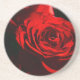 Feche a fotografia de uma rosa vermelha vibrante sobre presentes, joias e acessórios.