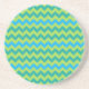 Uma Porta copos de arenito, que chama a atenção, com um padrão ziguezague de Turquoise e Emerald Green Chevrons em um fundo Neon Green. Parte da coleção Posh & Painterly 'Blue Moons', baseada em uma colagem de papel pintada manualmente por Judy Adamson.