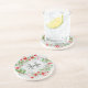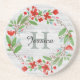 porta copos de arenito personalizado bonito, com aquarela floral em madeira rústica (simulada em impressão.).