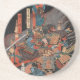 Esta porta copos apresenta um close-up do lendário samurai Minamoto no Yorimitsu e um aliado enquanto lutam contra algum oni. Esta é uma reprodução impressa de uma impressão de 1858 blocos de madeira japoneses feita pelo mestre Utagawa Yoshitsuya (também conhecido como Ichieisai Yoshitsuya).