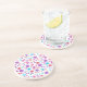 Uma porta copos redonda e arenosa bonito, com um padrão de flores brilhantes em roxo, turquesa, rosa e laranja sobre fundo branco, de uma colagem de papel pintada à mão por Judy Adamson. Você pode mudar facilmente a cor do plano de fundo, se desejar, usando o botão Editar.