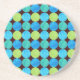 Uma Porta copos de Sandstone, à volta dos olhos, com um padrão reticulado de Turquesa, Azul Azul, Esmeralda e Neon Verde sobre um fundo Negro que você pode facilmente mudar se você com - Real Azul e Branco ambos parecem bons. Parte da coleção Posh & Painterly 'Blue Moons', baseada em uma colagem de papel pintada manualmente por Judy Adamson.