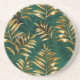 Seamless pattern of gold, jewelry, shiny fern branches and leaves on green, woodland, textured background. Golden fern.