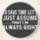 para economizar tempo, vamos assumir que ele está sempre certo, para poupar algum tempo, vamos supor que, ele está sempre certo, piada de humor, sarcasmo, futuro gerente bancário, gerentes de banco reformados, eu amo economia, formando, inspiração para o gerente do banco de casa eu sou um policial de casa, eu sou, para poupar tempo, assumir que ele nunca está errado, apenas assumir, poupar tempo, uma vez