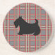 Um Terrier escocês preto decora este estilo retrô, uma montanha-russa de bebidas xadrezes. Use estas portas copos de cachorro escoceses para as férias, ou qualquer dia. O design é da arte original.