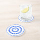Um teste padrão azul e branco na moda do círculo com abstrato do azul soa em um fundo branco.