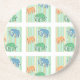 O teste padrão sem emenda bonito dos elefantes coloridos dos desenhos animados com sombras que andam ao redor sobre listras em acalmar máscaras pastel de verde e azul alaranjados aperfeiçoa para a sala do miúdo como o papel de parede ou a matéria têxtil. © e ® Bigstock® - todos os direitos reservados.