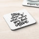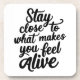 Porta copos inspiracional com a frase "Fique perto do que faz você se sentir vivo".
