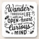 Porta copos inspiracional com a frase "Ande pela vida com um coração aberto e uma mente curiosa".