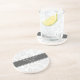 Esta porta copos dada forma redonda do arenito da bebida tem um teste padrão cinzento e branco de paisley com um lugar para o seu adicionar os nomes dos noivos junto com a data dos nuptuals.