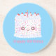 This design features a white frosting sprinkle birthday cake with a candle on coasters