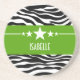 Tendy e moderna Porta copos Sassy Star Zebra Sandstone, com um fundo de impressão em preto e branco e uma ousada borda verde, encantada, adornada com um divertido filme estelar. Este design feminino pode ser personalizado com o texto personalizado de sua escolha. Clique em "Personalizar" para encontrar mais opções de personalização.