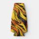 Este refrigerador tem designs listradas amarelas e pretas.