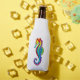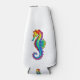 Articulação artificial, brilhante, arco-íris, cavalo de mar poligonal sobre fundo branco. Tatuagem brilhante.