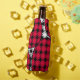 Este refrigerador tem um design moderno do século médio de diamantes negros sólidos traços de diamantes negros dentro com bolhas cor-de-rosa embaixo deles, todos num campo de branco.