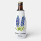 Bluebonnets, flores azuis, Texas, resfriador de garrafas de pintura de aquarela texana. Design floral de verão. Perfeito para favores de casamento. Personalize com seus nomes e data.