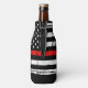 Thin Red Bottle Cooler - design de bandeira americana em cores de bandeira de bombeiro, design angustiado. Este bombeiro personalizado pode resfriar é perfeito para presentes de bombeiros, favoritos para festas de aposentadoria de bombeiros, festas de formatura de bombeiros ou para celebrar seu bombeiro favorito. Perfeito para todos os bombeiros, bombeiros e membros da família e apoiadores dos bombeiros. Personalize com o nome. COPYRIGHT © 2020 Judy Burrows, Black Dog Art - Todos Os Direitos Reservados. Rústica fina linha vermelha Freseira Personalizada de Bombeiros