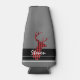 CLIQUE EM PERSONALIZAR A OPÇÃO DE MODELO E ENTRAR NOME cinza Personalizável ao redor do refrigerador com faixas pretas e brancas na metade inferior e uma silhueta de uma cabeça de xadrez de búfalo vermelha e preta no centro frontal. Personalizado com o nome na letra do script de caligrafia de pincel sobre o veado. Faz uma ideia de presente excelente para um homem.