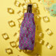 Este refrigerador de garrafas tem um design de tulipas de deco de arte de pentágonos e trapezoides em diferentes tons de roxo.