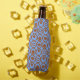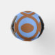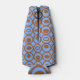 Este resfriador tem um design geométrico de círculos em filas com círculos ou ovais dentro a castanho num campo azul.