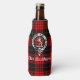 O resfriador da garrafa de na moda apresenta o crachá da crista do Clan MacQueen da Escócia e texto personalizável sobre fundo de tartan.