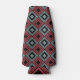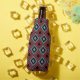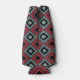 Este refrigerador de garrafas tem um design de deco de arte de formas de diamante com linhas diagonais, diamantes negros e diamantes coloridos em tons de azul e morango.