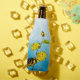 Um pequeno galho de árvore poplar com folhas amarelas cercadas e curtidas isoladas sobre fundo azul e branco texturizado que serve como céu. Pintura fotográfica.