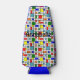 Este refrigerador de garrafas tem um design de Bauhaus de uma grelha com quadrados e retângulos em vermelho, verde, azul, laranja, azul claro, amarelo e vermelho. Altere o nome, mantenha-o ou elimine-o completamente.