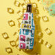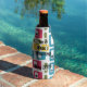 Este refrigerador de garrafas tem um design moderno do século médio de retângulos arredondados, alguns dos quais são ligados e alguns têm estrias, em cores retrógradas de vermelho, ouro, verde e turquesa. Se você gosta do design, mas prefere cores diferentes, me mande mensagem.